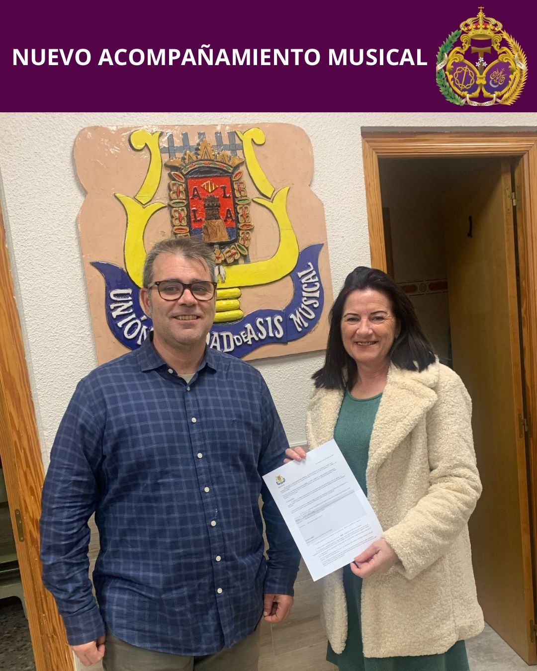 Tenemos el placer de informar a nuestro hermanos de que estrenamos nuevo acompañamiento musical de la mano de la Unión Musical Ciudad de Asís. Los sones de esta arraigada banda alicantina acompañarán el próximo Lunes Santo al palio de Nuestra Señora de las Lágrimas. Agradecemos a todos sus integrantes su entrega y disposición para afrontar esta nueva etapa. A su vez, queremos agradecer también a la Sociedad Musical La Paz de Sant Joan por habernos acompañado durante estos años.