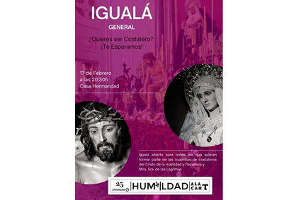 PRÓXIMA IGUALÁ GENERAL, ¿QUIERES SER COSTALERO? Volvemos con más fuerza que nunca. El próximo jueves 17 de febrero a las