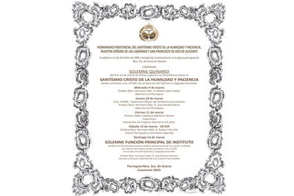 SOLEMNE QUINARIO EN HONOR AL SANTÍSIMO CRISTO DE LA HUMILDAD Y PACIENCIA La Hermandad Penitencial del Santísimo Cristo de la